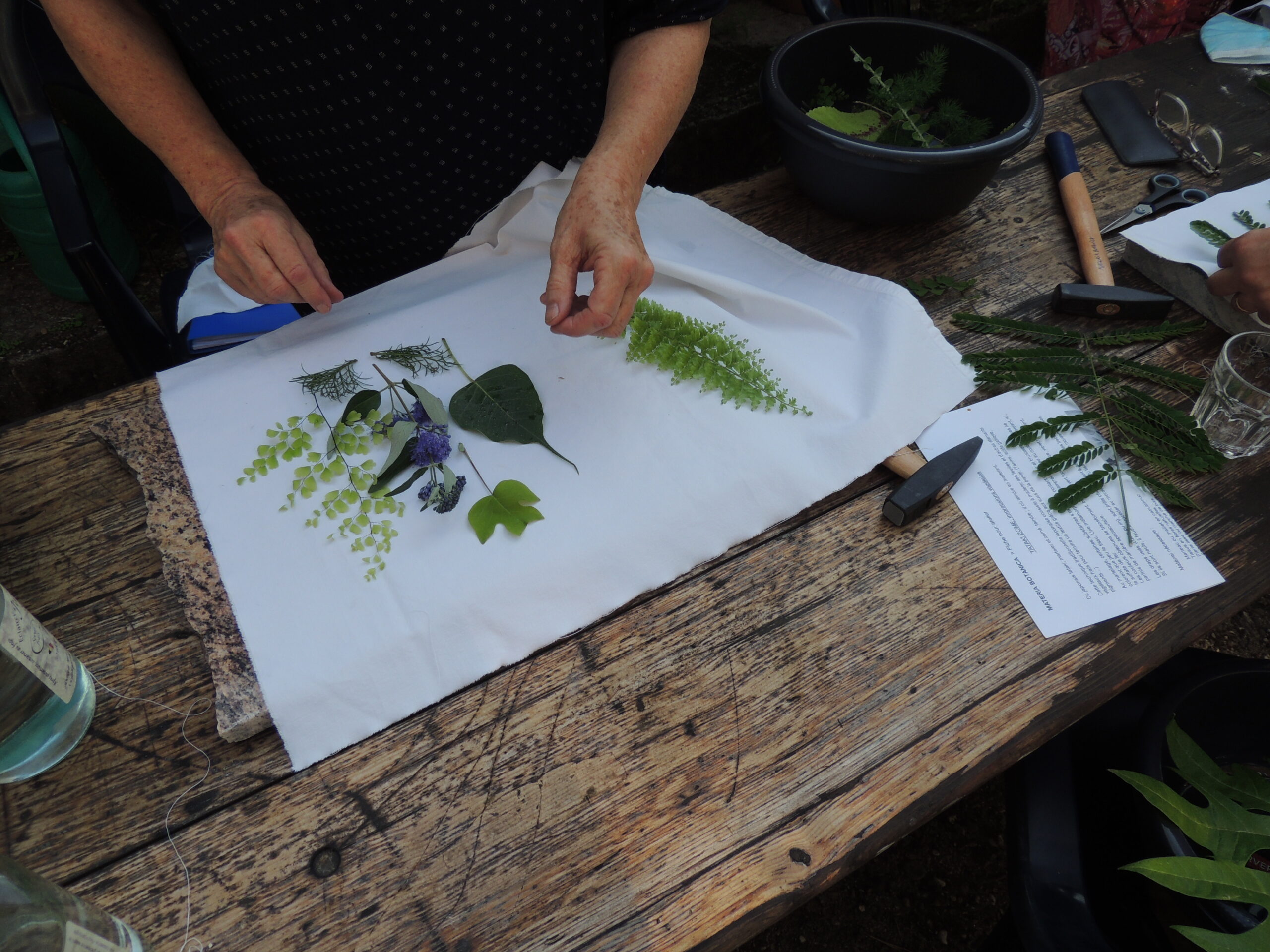 Un art ancestral japonais qui consiste à marteler des végétaux frais sur du tissu pour en extraire leurs pigments naturels et créer des motifs uniques. Un moment de transmission et d’expression artistique.
